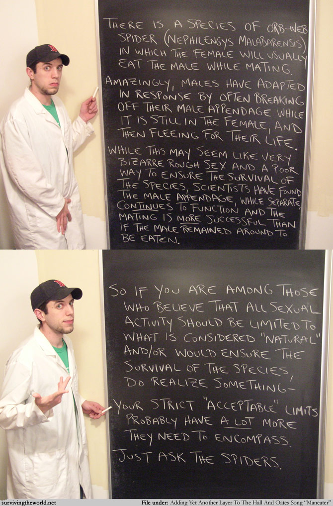 Ladies, this does not give you permission to conduct certain amateur surgeries on gentlemen with the excuse of "I just want to ensure the survival of the species." Please put this idea out of your mind.