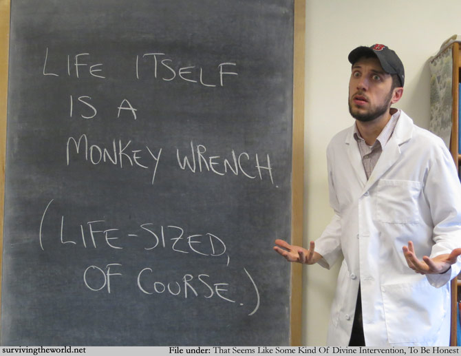 Who decided monkeys needed wrenches, they already have those prehensile tails, giving them tools was a terrible idea, let alone designing tools shaped like monkeys