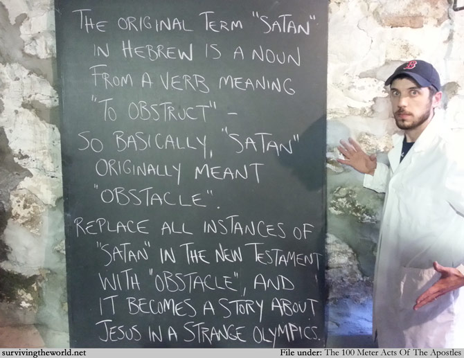 I admit, I would enjoy the Olympics a bit more if the competitors in track and field shouted "Get behind me, Satan" at every hurdle as they jumped over it.