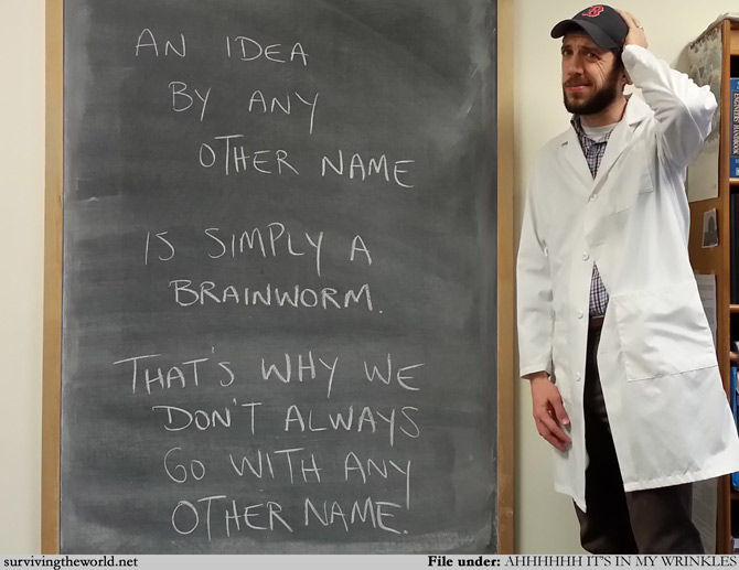 I'm having a lot of trouble coming up with comics ideas lately, probably because various thoughts of fear and anger and despair keep worming their way through anything that could be meaningful or funny. I also made the mistake of comparing the lyrics to the great Guster song "Airport Song" with the incoming administration and now have an earworm to go with my various brainworms. (The line "Learn to love the price you pay / Trust me dear you're better off this way" is basically on endless repeat in my head, and thus I'm repeatedly singing it, too, although at least my girls start dancing like crazy to the bongoes when they come in at that point.) Anyway, brainworms. Yes.