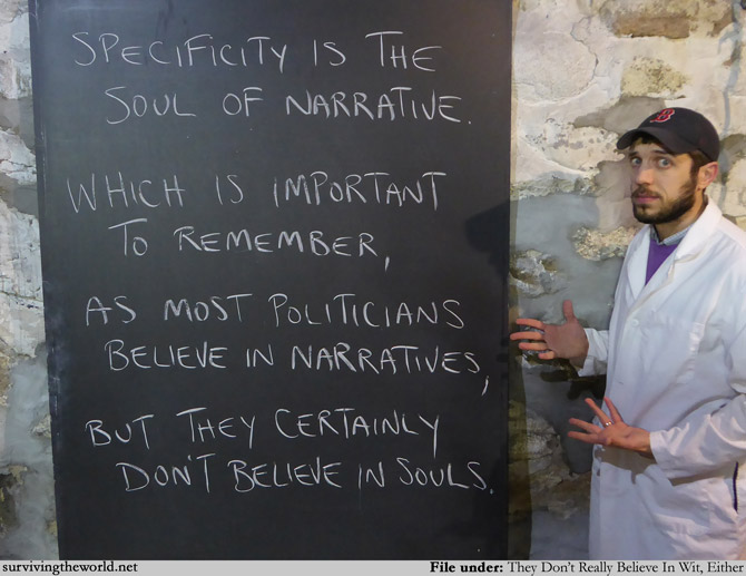 They don't want to have to get specific on the details of their proposals, because then they can be called out on their proposals, or called out on breaking a promise. There's no penalty for hypocrisy but there are plenty of penalties for specificity, so keep that in mind as you're watching the speech tonight, if you're subjecting yourself to such platitudes and nonsense.