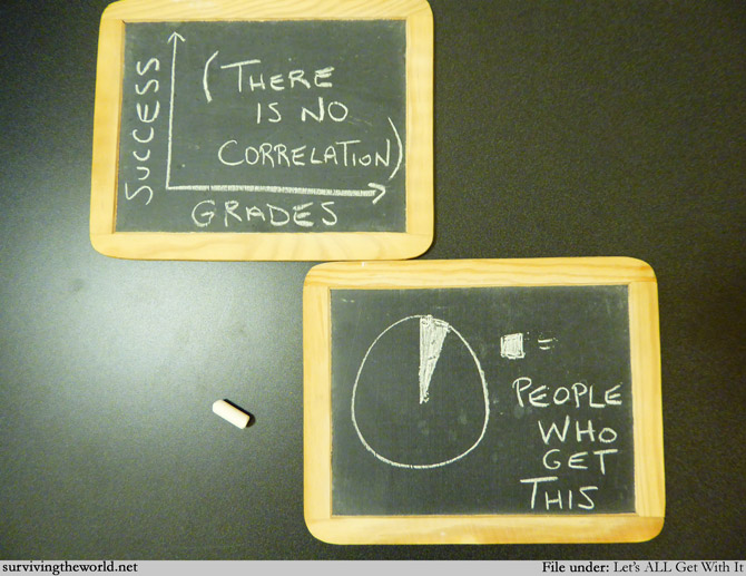 This is not something I appreciated as a student, for sure, but at least it's starting to ring true in my head as a professor. That said, we can all agree that way too many individuals, groups, institutions, companies all are convinced that there IS a correlation and start to make decisions based on that.