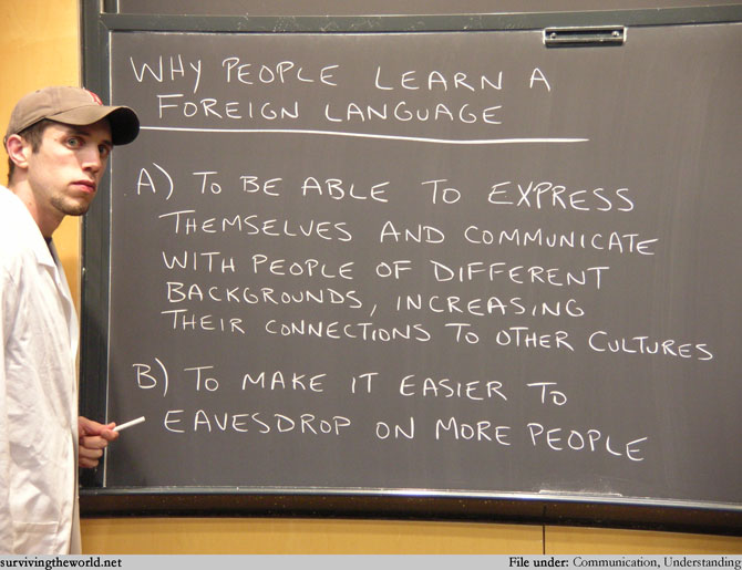 In this greater multicultural world, it certainly seems like the gossiping busybodies would be more interested in learning foreign languages, anyway.
