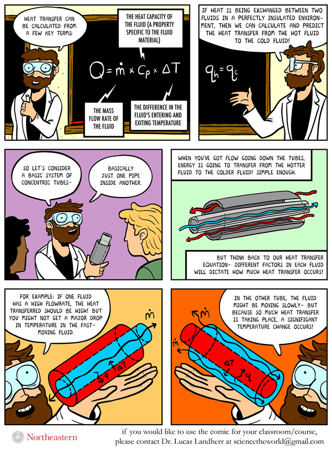 This comic about heat exchangers is drawn by the great Matt Lubchansky! Matt has an engineering degree and was excited to put it to use (although considering the number of pipes that look like they're leaking, I'm not sure I want to know his previous use). More of Matt's comics can be found in a bunch of places and you should read them all!