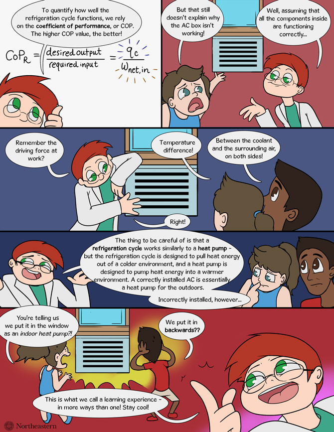 Here is our eighth finished science comic! This would go hand-in-hand with a thermodynamics course, but if you don't care about thermo, consider it as a means of learning how air conditioners / refrigerators work. Either way, let me get personal and tell you why I love this particular comic: